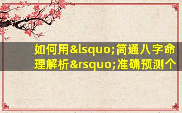 “简通八字命理解析”是一种基于中国传统命理学的简化分析方法,它通过解读个人的生辰八字(年、月、日、时的天干地支)来推测运势。要相对准确地预测个人运势,需结合以下步骤和注意事项: