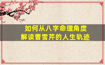 从八字命理角度解读曹雪芹的人生轨迹,需结合其家族兴衰、文学成就及晚景凄凉等经历进行推演。尽管曹雪芹的具体生辰八字已不可考,但根据历史背景和《红楼梦》的创作内核,可尝试以命理逻辑进行象征性分析: