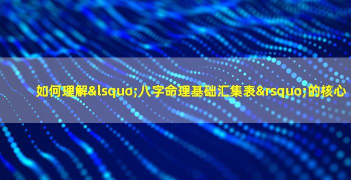 理解“八字命理基础汇集表”的核心要诀,需要从八字命理学的底层逻辑和实际应用两个维度切入。以下分步骤解析其核心要点: