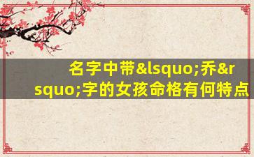 在中国传统命理学中,名字中的字确实被认为可能对个人的性格、运势产生影响,但需结合生辰八字、五行等综合分析。关于“乔”字在女孩名字中的象征意义和可能的命格特点,可以参考以下解析: