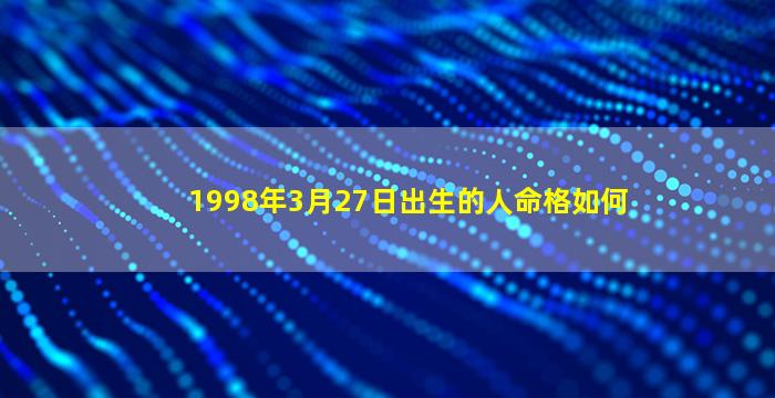 根据中国传统命理学(八字算命),一个人的命格由出生年、月、日、时的天干地支组合而成,称为“四柱八字”。由于您提供的出生时间缺少具体时辰(时柱),以下基于1998年3月27日的日期(公历)进行初步推算,但需注意时辰的缺失会影响命格的完整性,尤其是对子女宫、晚年运势等的判断。