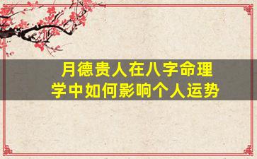 在八字命理学中,月德贵人是一种吉祥的神煞,象征阴德庇佑、逢凶化吉的力量。其对个人运势的影响主要体现在以下几个方面:
