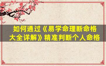 《易学命理断命格大全详解》这类书籍通常结合了传统命理学(如八字、紫微斗数、五行理论等)的知识体系,帮助读者分析个人命格。要精准判断命格,需系统学习并灵活运用其中的理论方法。以下是关键步骤和注意事项: