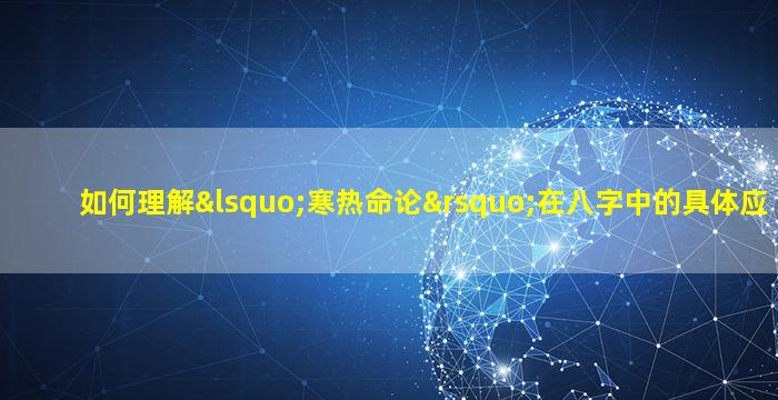 “寒热命论”是八字命理中基于阴阳五行平衡的重要理论,主要关注命局中五行能量的寒暖燥湿状态对个人运势的影响。其核心在于通过调候(调节气候)来优化命局,具体应用可分为以下几个方面: