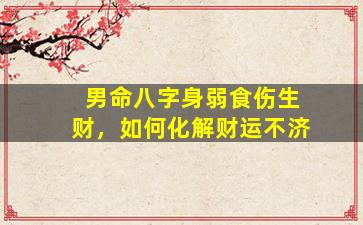 在八字命理中,身弱食伤生财的格局确实容易导致财运不济,因为食伤(食神、伤官)泄耗日主元气,而财星(正财、偏财)又进一步消耗日主能量,形成“身弱不胜财”的局面。化解的核心是 补益日主、平衡五行能量,具体可从以下方向入手: