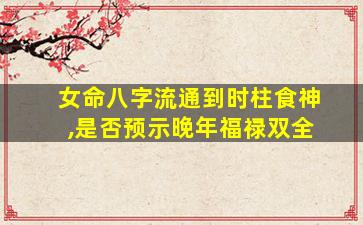 在八字命理中,女命时柱出现食神且整体八字五行流通,确实常被视为晚年福禄的潜在征兆,但需结合全局综合分析。以下是具体解读: