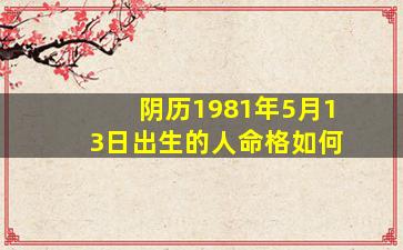 根据中国传统命理学,1981年阴历五月十三出生的人,其命格分析需结合生辰八字、五行、十神等因素综合推算。以下是基于您提供日期的简要命理分析: