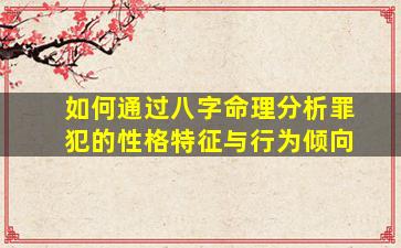 通过八字命理分析罪犯的性格特征与行为倾向,是一种结合传统命理学与犯罪心理学的尝试。需明确的是,这种方法属于非科学领域的研究,实际应用中需谨慎对待,不可替代法律和心理学专业分析。以下是具体分析思路和方法: