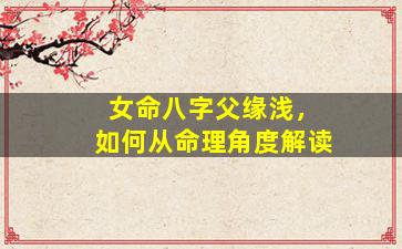 从命理学角度,“女命八字父缘浅”通常指命局中代表父亲的十神(偏财)或相关宫位(年柱)出现以下特征,导致与父亲关系疏离、缘薄或助力较少。以下是具体的解读思路: