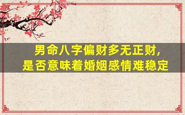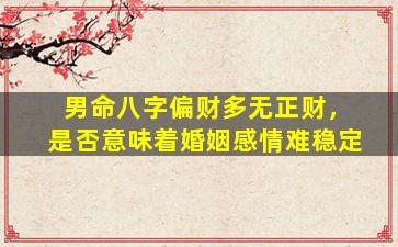 在八字命理中,偏财与正财确实对婚姻感情有一定的影响,但需结合整体命局综合分析,不能仅凭单一因素断言婚姻是否稳定。以下是对这一问题的具体分析: