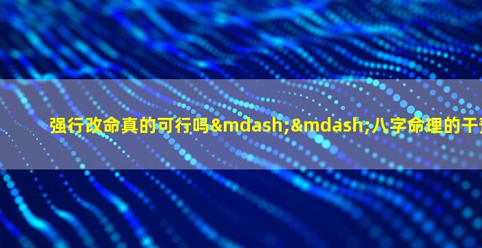 关于“强行改命”在八字命理中的可行性与后果,是一个涉及玄学、哲学和现实操作的复杂议题。以下从传统命理学原理、干预方式及潜在影响等方面展开探讨: