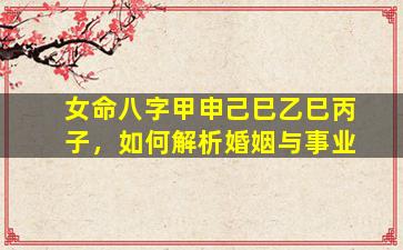 八字排盘女命八字:甲申 己巳 乙巳 丙子