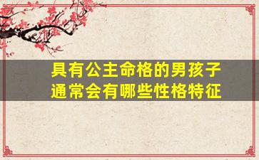 关于“公主命格”的男孩子可能具备的性格特征,可以从传统文化、现代心理学以及社会文化视角综合探讨。需要注意的是,“公主命格”并非严格的命理学概念,更多是一种隐喻式的描述,通常指代那些天生被宠爱、气质矜贵或性格细腻的男性。以下是一些可能的特征: