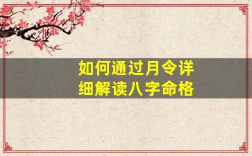 通过月令(月支)解读八字命格是传统命理分析的核心环节,因月令代表季节气候、五行旺衰及命局能量枢纽。以下是系统的解读方法:
