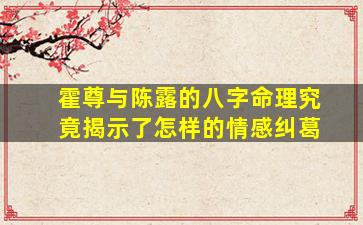 在中国传统文化中,八字命理(四柱预测)常被用来分析个人性格、命运轨迹及人际关系,包括情感婚姻。不过,需明确的是,命理分析属于传统文化范畴,其结论并无科学依据,更多是提供一种文化视角的解读。以下从命理角度对霍尊与陈露的情感纠葛进行象征性分析,仅供文化探讨:
