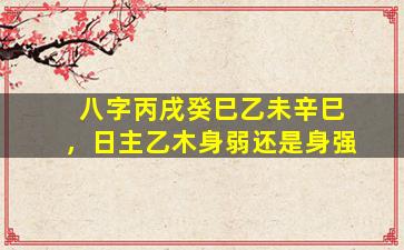 要分析日主乙木的强弱,需结合八字中的五行生克关系和干支组合。以下是具体分析: