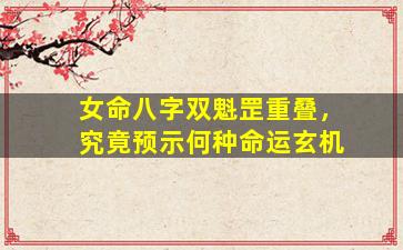在八字命理学中,"魁罡"是一种特殊的神煞组合,主要指日柱为庚辰、壬辰、戊戌、庚戌四组之一。若女命八字中"双魁罡重叠"(如日柱和月柱均为魁罡,或魁罡星在命盘中多次出现),传统命理通常认为其命运有独特之处,但需结合全局分析。以下是可能的预示方向: