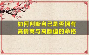 判断自己是否拥有“高情商”与“高颜值”的命格,可以从以下几个角度进行分析。需要注意的是,这些标准并非绝对,更多是提供一种自我反思的框架,且情商和颜值都可以通过后天努力提升或优化。