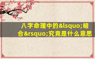 在八字命理中,“暗合”是一种特殊的地支相互作用关系,指两个地支在表面无直接相合(如六合、三合等),但通过藏干(地支隐藏的天干)之间的相合形成隐性关联。这种关系通常较为隐蔽,但可能对命局产生微妙影响。以下是详细解析: