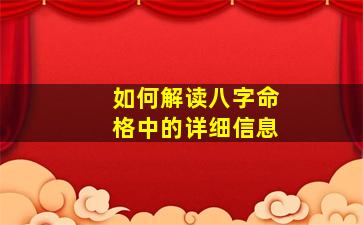 解读八字命格(四柱命理)的详细信息需要结合天干地支、五行生克、十神关系、大运流年等多方面因素综合分析。以下是系统性的解读步骤和要点: