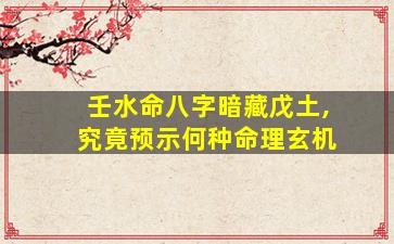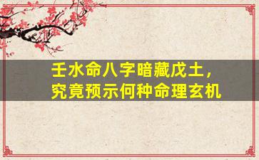 在八字命理中,壬水日主暗藏戊土(如地支藏干或原局、大运、流年出现),其命理玄机需结合整体格局分析,但可从五行生克与十神角度提炼以下要点: