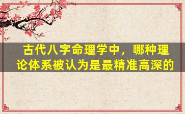 在古代八字命理学(四柱预测学)的发展中,不同理论体系因历史背景、学术流派和实践验证的差异而被认为各有千秋。若要探讨“最精准高深”的体系,需结合学术传承和实践价值综合考量,以下为几种主流理论体系及其特点:
