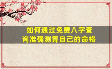 通过免费八字查询准确测算自己的命格,需要结合专业知识和可靠工具。以下是具体方法和注意事项: