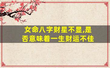 在八字命理中,"财星不显"通常指女性命局中天干和地支主气(本气)没有正财或偏财星,但这并不意味着财运一定不佳。需结合以下角度综合分析: