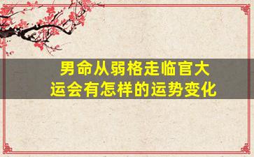在八字命理中,"从弱格"是指日主极弱,无法自立,需顺从弱势格局的命局;而"临官"(又称"禄")是十二长生运程中代表旺盛、发达的阶段。当男命从弱格走临官大运时,运势可能会呈现以下特点:
