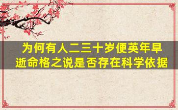关于“二三十岁英年早逝”的现象以及“命格”是否科学的问题,可以从科学、哲学和社会学等多个角度来探讨: