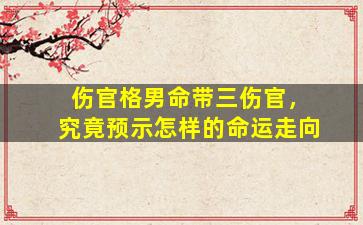 在八字命理学中,伤官格男命带有三个伤官(即八字中天干或地支藏干出现三个伤官星),通常被视为性格与命运较为独特的配置。伤官是“我生之神”,代表才华、自由、反叛、口才等特质,但过多则可能带来负面影响。以下是其可能的命运走向分析: