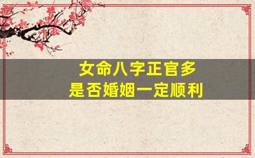 在八字命理中,“女命正官多”并不直接等同于婚姻一定顺利,需要结合具体命局综合分析。以下是关键要点: