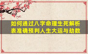 通过八字命理解析人生大运与劫数,需结合命理学的核心逻辑和系统性方法。以下是分步骤的解析框架,供参考: