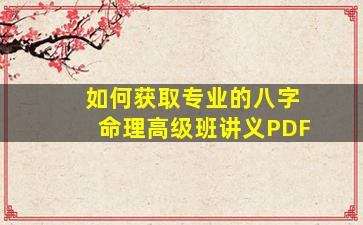 获取专业的八字命理高级班讲义PDF需要谨慎选择渠道,确保内容的权威性和合法性。以下是几种建议途径及注意事项: