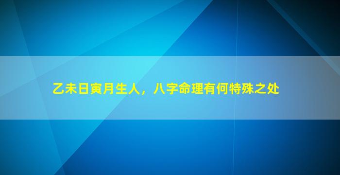 乙未日寅月生人的八字命理,需结合日柱、月令及整体五行生克来分析,其特殊之处主要体现在以下几个方面: