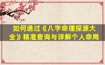 《八字命理探源大全》作为传统命理学经典著作,系统阐述了八字(四柱)排盘与命局分析的方法。要精准查询和详解个人命局,需遵循以下步骤: