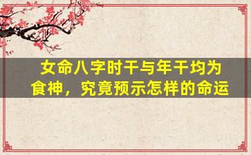 在八字命理中,食神作为十神之一,代表才华、情感、子女、福气等。女命年干和时干均为食神,其具体影响需结合八字整体格局、五行生克及大运流年综合分析。以下是一些可能的解读方向: