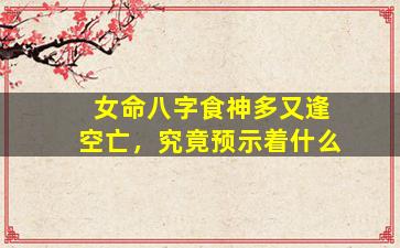在八字命理中,女命食神多又逢空亡的组合确实有其特殊寓意,需结合具体八字结构综合分析。以下是可能预示的几方面信息: