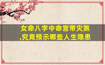 在传统命理学中,灾煞是八字神煞体系中的一种凶煞,主要关联意外灾祸、健康风险和人际冲突。女命八字中命宫带灾煞的解读需结合命局整体,但通常可能预示以下潜在隐患,并附注意事项: