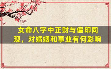 在八字命理中,正财与偏印同现于女命,需结合十神特性、五行生克及具体位置(如四柱中的年、月、日、时)综合分析,以下为一般性解读: