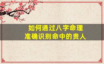 通过八字命理识别命中的贵人,需结合十神、神煞、五行生克及干支关系综合分析。以下为系统性的判断方法:
