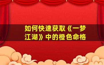 在《一梦江湖》中,橙色命格(最高品质)的获取需要一定的时间和策略积累,以下是快速获取的几种有效方法: