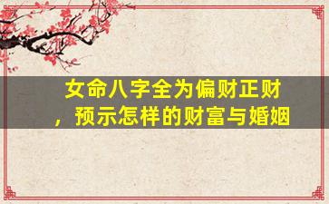 在八字命理中,女命八字全为偏财正财(即天干地支中财星多见),确实会对财富和婚姻产生特定影响,但需结合整体格局(如日主强弱、官杀有无、财星位置等)综合分析。以下是常见解读方向: