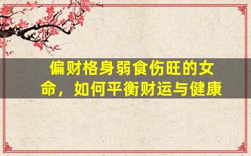 在八字命理中,"偏财格身弱食伤旺"的女命确实容易面临财运与健康的平衡问题。以下是具体的分析和建议: