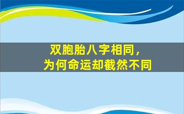 关于双胞胎八字相同但命运不同的现象,可以从易学理论、现实因素以及哲学层面综合理解。以下是几种主要解释方向: