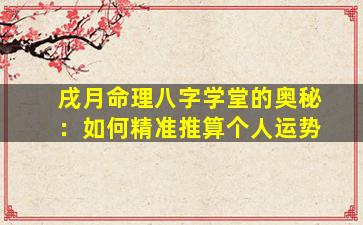 “戌月命理八字学堂”通常指以中国传统八字命理学(四柱预测)为核心的教学或研究机构,强调通过出生年、月、日、时的干支组合(八字)来推算个人运势。要精准推算运势,需结合命理学的系统理论和实践经验。以下是关键步骤和注意事项: