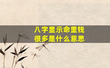 “八字显示命里钱很多”是一种基于中国传统命理学(八字算命)的解读,意思是根据个人的出生时间(年、月、日、时)所排出的八字命盘,分析出命主可能具备容易积累财富的先天运势特征。以下是具体的解释和注意事项: