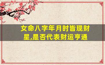 在八字命理中,财星代表一个人的财富、物质资源和理财能力,但女命八字年月时皆现财星是否一定代表财运亨通,需结合以下因素综合分析: