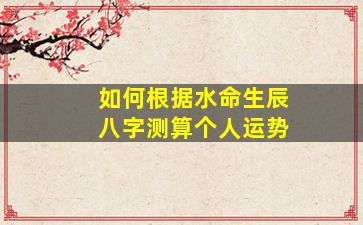 根据生辰八字测算个人运势(尤其是针对“水命”)是中国传统命理学中的一种方法,需结合五行(金、木、水、火、土)生克、天干地支、十神等理论综合分析。以下是具体步骤和逻辑: