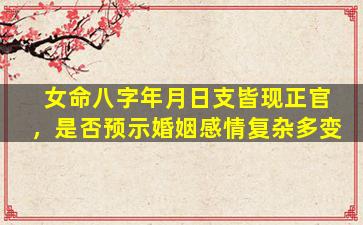 在八字命理中,女命的正官星代表夫星,通常象征稳定的婚姻和配偶关系。若年、月、日三支皆现正官,确实可能反映感情世界的复杂性,但需结合全局综合分析,不可单一论断。以下是具体解析: